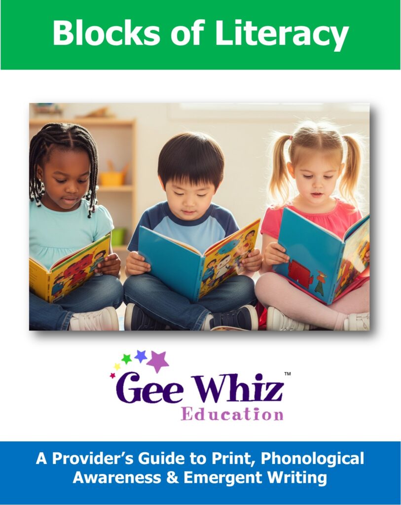Learning to read starts WAY before children enter school. Our Blocks of Literacy: A Provider's Guide to Print, Phonological Awareness & Emergent Writing, is designed to be used in conjunction with the Gee Whiz curriculum. It covers topics including: